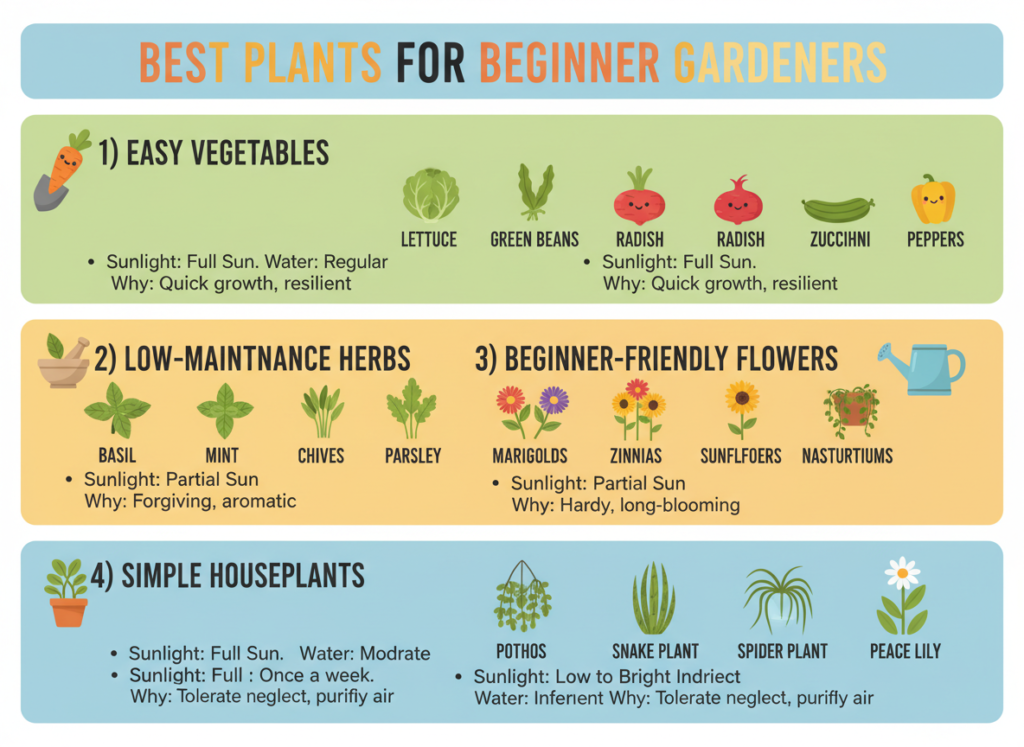 If you’re just starting out, stick with easy, fast‑growing plants like: